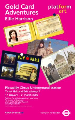 In 2005 Harrison was commissioned by Platform For Art (now Art on the Underground), to transform the data collected for the Gold Card Adventures project into a solo exhibition for Piccadilly Circus Underground Station. The exhibition took the form of 20 large format posters (98 × 158 centimetres) installed in 20 of the advertising sites in the ticket hall and exit subway two of the station.